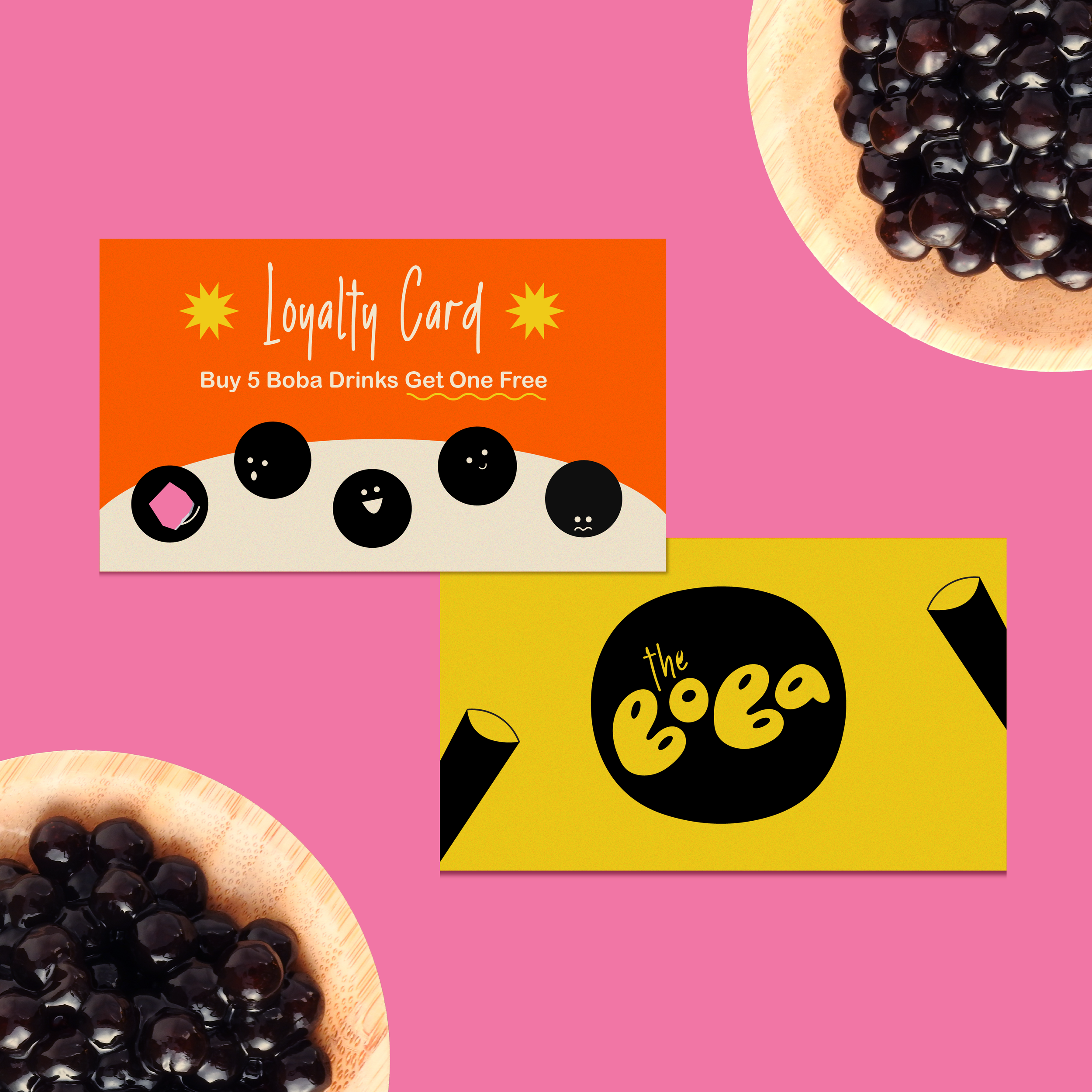 The Boba is a bubble tea business with a physical location and products on store shelves. The logo mark type was hand drawn which was really fun.